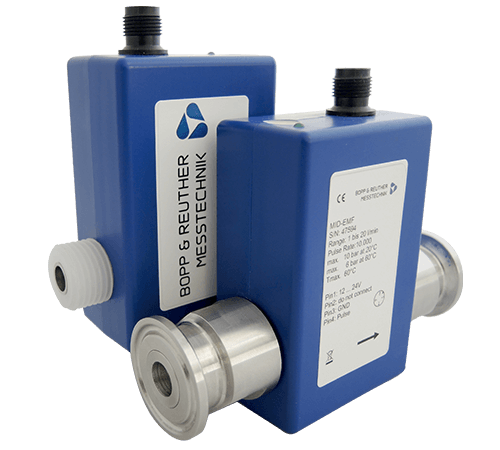 Our electromagnetic flowmeters are mainly used in the food and beverage industry. They work according to the Faraday principle. Unlike all other electromagnetic flowmeters on the market, they operate in an alternating field (AC) instead of a synchronized DC field. The result is higher measurement dynamics and faster, more precise measurements for dosing the filling time up to 100ms.