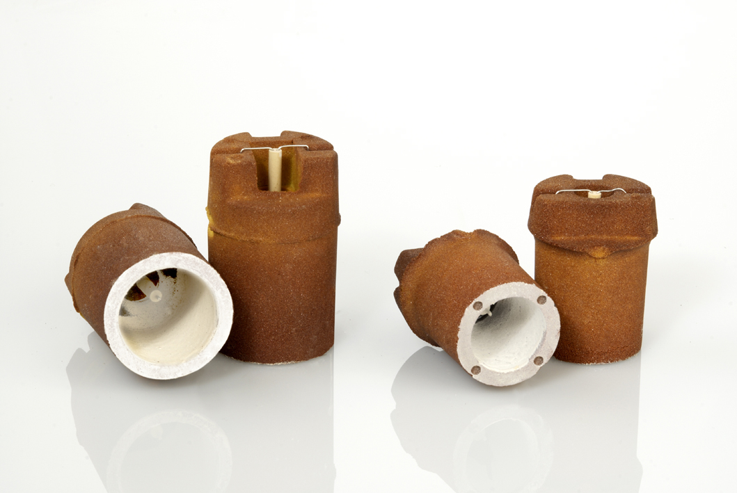 S (Pt-Pt/Rh10%) measuring the cooling curve and determining the %C of the liquid metal.