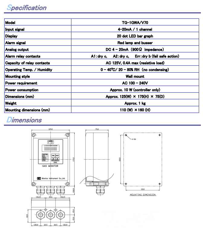 Alarm 1, 2 relay contacts (dry c)